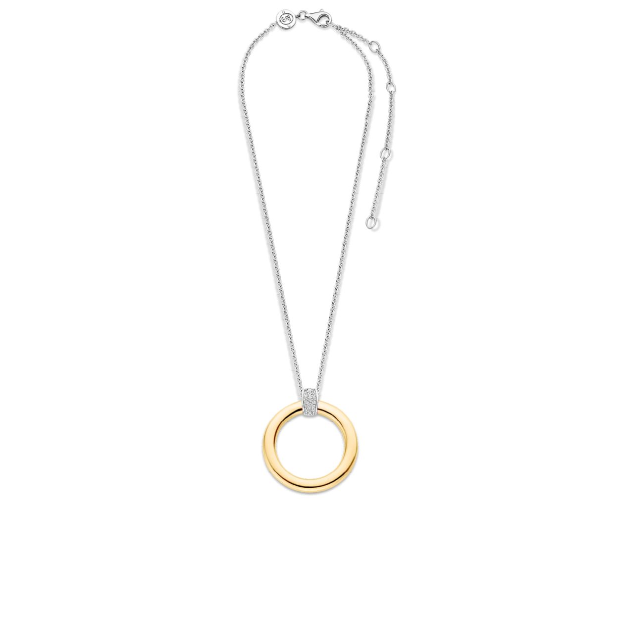 Deze ronde gold plated TI SENTO  hanger 3924ZY/48 is simpel en stijlvol. Haar pavé witte zirkonia geeft haar een vleugje magie. Mix en match haar met andere hangers of draag haar alleen.