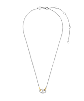 Het design van deze TI SENTO vergulde zilveren ketting 3986ZY is verrijkt met een koffieboon-symbool met een handgezet pavé van witte cubic zirconia steentjes. Een klassiek symbool in een nieuw, speels gedurfd jasje. De ketting is volledig vervaardigd uit 925 sterling zilver. De twee schakels om de hangertje zijn vergulde. Draag dit stijlvolle en verfijnde design perfect als solo accessoire in je look of mix het met je andere favoriete accessoires; durf je eigen look te creëren. De lengte van de ketting is 42 cm.