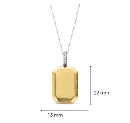 Het pronkstuk van deze TI SENTO vergulde zilveren ketting 6808ZY is het medaillon, iconisch uitgevoerd in een rechthoekige vorm. De sluiting is gedecoreerd met glinsterend witte cubic zirconia. Bewaar je mooiste herinneringen in dit bijzondere medaillon. De hanger is gemaakt van 925 sterling zilver en wordt geleverd met een fijne zilveren ketting.