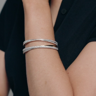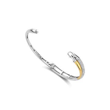 De TI SENTO armband 23071ZY is een perfecte balans tussen moderne verfijning en moeiteloze elegantie. Vervaardigd uit 925 sterling zilver en luxueus verguld, herdefinieert deze armband tijdloze schoonheid met een eigentijdse twist. Drie met elkaar verweven banden creëren een sculpturale harmonie—elk met een eigen karakter. Een slanke geelgoudgekleurde band straalt warmte en straling uit, terwijl een koele zilvergekleurde vergulde band een verfijnde, gepolijste uitstraling geeft. De laatste band schittert met pavé-set cubic zirconia, die het licht vangt bij elke beweging en het stuk voorziet van een gevoel van ingetogen glamour. Deze armband is een moeiteloze uiting van verfijnde luxe—veelzijdig genoeg voor zonnige dagen en maanverlichte avonden. Een waar symbool van eenheid en balans, het weeft schittering, elegantie en moderniteit samen in één naadloos silhouet. Nikkelvrij en hypoallergeen, biedt het comfort bij elk draagmoment. Laat dit stralende ontwerp je pols omarmen met eigentijdse charme en tijdloze verfijning.