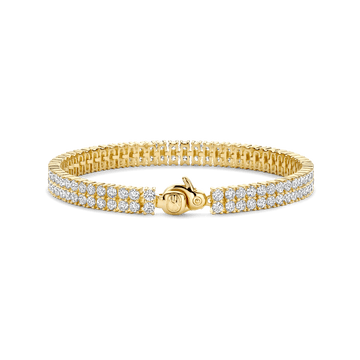 Laat je omringen door stralende verfijning met deze TI SENTO vergulde tennisarmband 23067ZY, een geraffineerd icoon, heruitgevonden in warme gouden tonen. Met de hand vervaardigd uit hoogwaardig 925 sterling zilver en rijkelijk afgewerkt met een goudkleurige vergulding schittert deze armband met een dubbele rij briljant geslepen witte zirconia, waarbij elke steen zorgvuldig is gezet om een eindeloze stroom van fonkeling te creëren. Het verfijnde, door pavé geïnspireerde ontwerp brengt vintage glamour naar het heden en straalt elegantie uit vanuit iedere hoek. De warme vergulding voegt een rijke, tijdloze gloed toe, waardoor dit het perfecte sieraad is voor zowel formele gelegenheden als dagelijkse luxe. Of hij nu alleen wordt gedragen om zijn schittering te benadrukken of gecombineerd met andere TI SENTO armbanden, hij verheft elke look moeiteloos.