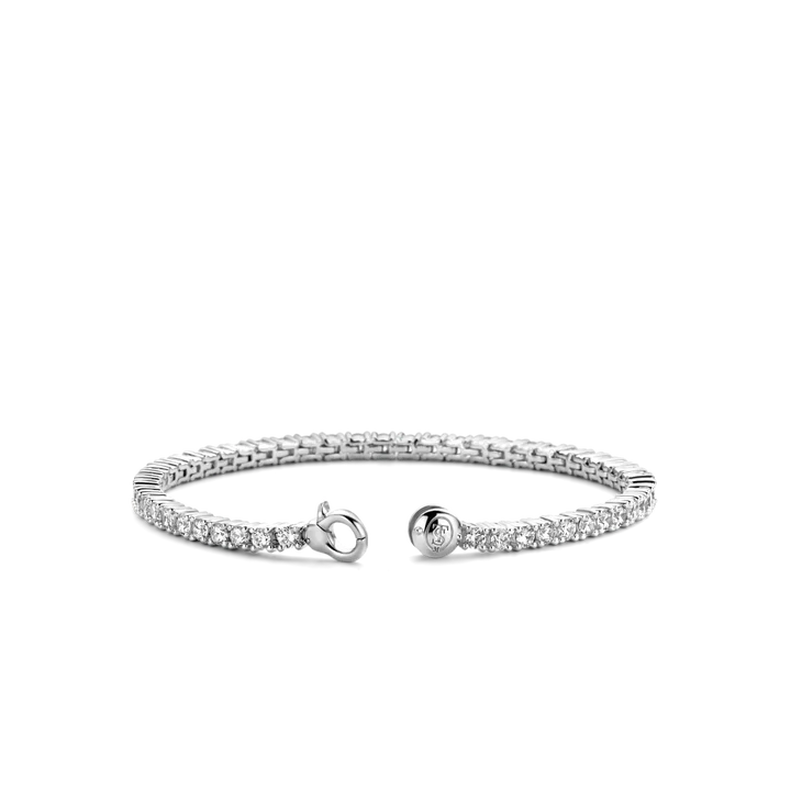Deze zilveren TI SENTO armband 2951ZI heeft een stroom van cabochon gezette witte zirkonia. Het veiligheidsslot is prachtig toegevoegd aan het ontwerp, om er zo voor te zorgen dat dit sieraad altijd bij je blijft. Een erg licht en luxueus sieraad.