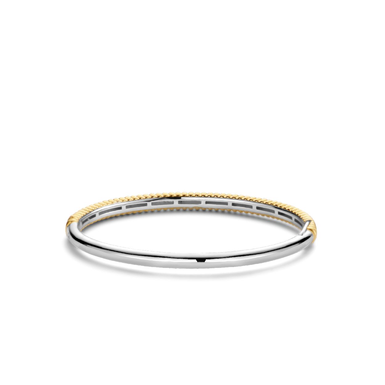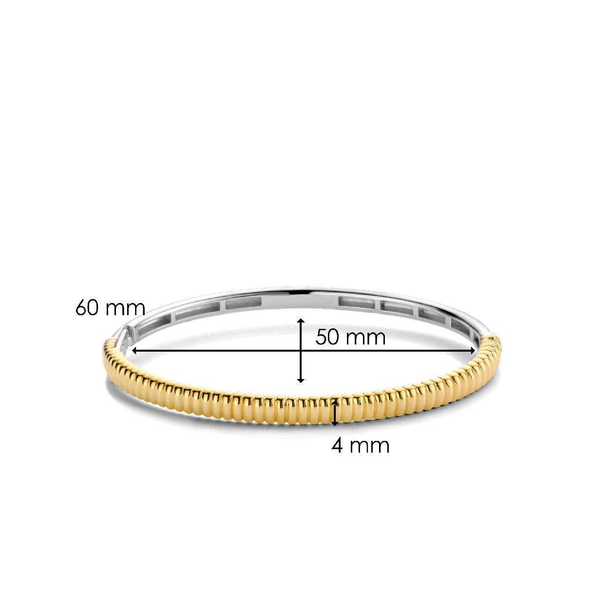 Deze slanke, vergulde TI SENTO zilveren bangle 2956SY heeft een unieke geribbelde structuur. De armband is gemaakt van 925 sterling zilver. Laat dit statement juweel haar gouden glans verspreiden. De extra veilige sluiting is speciaal ontworpen zodat dit sieraad altijd bij je blijft.