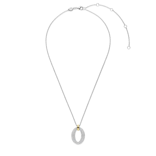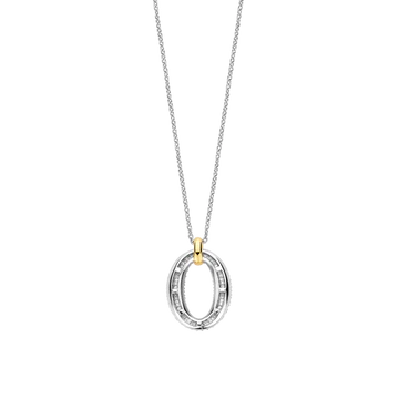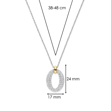 Deze TI SENTO ketting 34092ZY trekt alle aandacht. Gemaakt van 925 sterling zilver en afgewerkt met een stralende platinakleurige laag, straalt deze ketting tijdloze elegantie uit. Het middelpunt is een verbluffende ovaalvormige hanger, bezet met schitterende cubic zirconia stenen. Elke steen is zorgvuldig geplaatst voor een oogverblindende schittering, waardoor deze ketting een echt statement van verfijnde elegantie is. De hanger hangt elegant aan een delicate zilvergekleurde ketting met een geelgoud gekleurde clip-oog, wat een vleugje warmte en verfijning toevoegt aan het ontwerp. Met zijn klassieke silhouet en luxueuze details straalt dit sieraad verfijning en charme uit, perfect om zowel dag- als avondlooks te verrijken. Of je de ketting nu in laagjes draagt voor een moderne twist of solo als een gedurfd statement, deze ketting belooft een vleugje gratie en individualiteit aan je stijl toe te voegen. Zorgvuldig vervaardigd voor de gevoelige huid, biedt deze nikkelvrije en hypoallergene ketting langdurig comfort en kwaliteit.