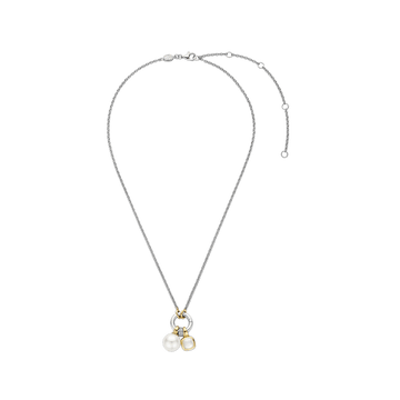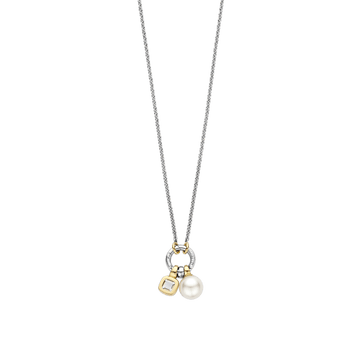 Vier zachte elegantie met dit TI SENTO vergulde collier 34114YP, waar delicate details en verfijnde materialen samenkomen. Vervaardigd uit 925 sterling zilver en afgewerkt met een stralende goudkleurige vergulding is dit collier voorzien van een signature cirkelschakel waaraan twee verschillende charms hangen: een gladde parelkraal en een kussenvormige parelmoersteen, omlijst door een goudkleurige zetting. Een subtiel pavé accent voegt een vleugje fonkeling en lichtspel toe. Dit vrouwelijke hanger-collier is een sierlijk sieraad dat klassieke parelcharme verenigt met eigentijds hangerdesign. Of je nu op zoek bent naar een parelcollier, een betekenisvol cadeau voor haar of een elegant stuk om je sieradencollectie te verrijken, dit collier brengt zachte verfijning in elke look. Ideaal om te combineren met fijne goudkleurige colliers of alleen gedragen als middelpunt, het maakt moeiteloos de overgang van dag naar nacht. Nikkelvrij en hypoallergeen, het belooft blijvend draagcomfort naast een tijdloze aantrekkingskracht.
