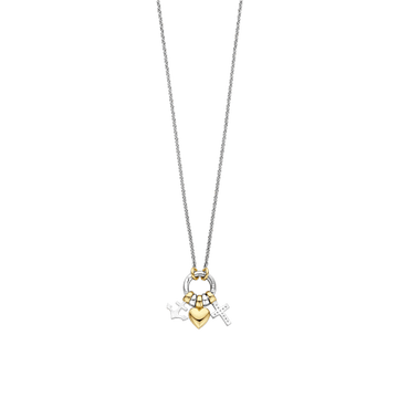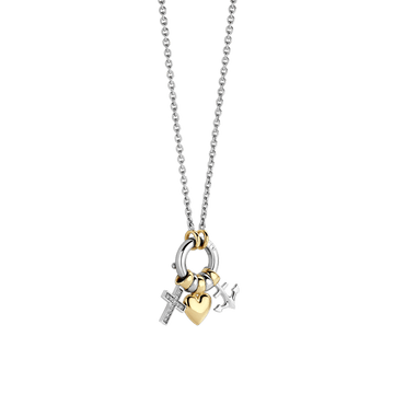 Vier symbolen van verbondenheid met dit TI SENTO vergulde collier 34115ZY. Vervaardigd uit hoogwaardig 925 sterling zilver en afgewerkt met een goudkleurige vergulding toont dit collier drie betekenisvolle charms: een pavé gezet kruis, een gepolijst hart en een slanke anker. Hangend aan een zilver-goudkleurige schakeling speelt iedere hanger met contrast en glans, en weerspiegelt zo de thema’s liefde, geloof en hoop. Dit charm-collier is meer dan een sieraad – het is een persoonlijk statement. Of je nu op zoek bent naar symbolische vergulde hangers, een hartcollier met diepere betekenis of een door geloof geïnspireerd cadeau voor haar, dit stuk brengt elegantie met emotie. Alleen gedragen laat het zijn iconen stralen, gecombineerd met verfijnde goudkleurige of zilveren colliers creëert het een moderne, zorgvuldig samengestelde look. Nikkelvrij en hypoallergeen, dit collier is ontworpen om zowel comfort als blijvende emotionele waarde te bieden.