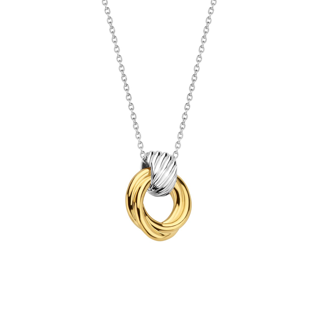 Deze TI SENTO vergulde zilveren ketting 3973SY heeft een stijlvolle ronde hanger met vergulde, sierlijke lijnen en een sierlijk zilveren patroon in het midden. De ketting is vervaardigd uit 925 sterling zilver. Mix het met andere korte en wat langere chunky kettingen of draag het als een solo statement piece. De lengte van Het collier is verstelbaar tussen 38 en 48 cm.