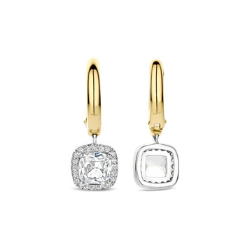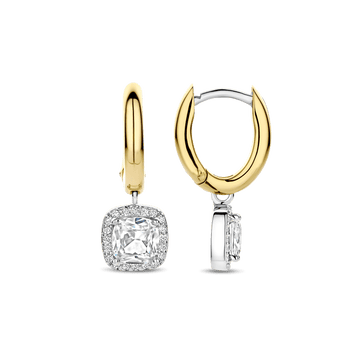 Ontdek stralende dualiteit met deze TI SENTO goudkleurig vergulde zilveren oorbellen 78030ZY. Vervaardigd uit 925 sterling zilver, draagt elke slanke goudkleurig vergulde ring een 7 mm fantasy-cut witte cubic zirconia die zachtjes onder het oor meebeweegt. Een fijne halo van pavé-steentjes, geplaatst in een koel platinakleurig vergulde rand, versterkt de luminantie van de centrale steen en voegt verfijnde textuur toe terwijl de oorbellen het licht vangen. Draag ze solo voor moeiteloze dag-tot-avond elegantie, of combineer ze met delicate studs voor een zorgvuldig samengestelde ear stack. Nikkelvrij en hypoallergeen, voor blijvende glans en lichtgewicht comfort.