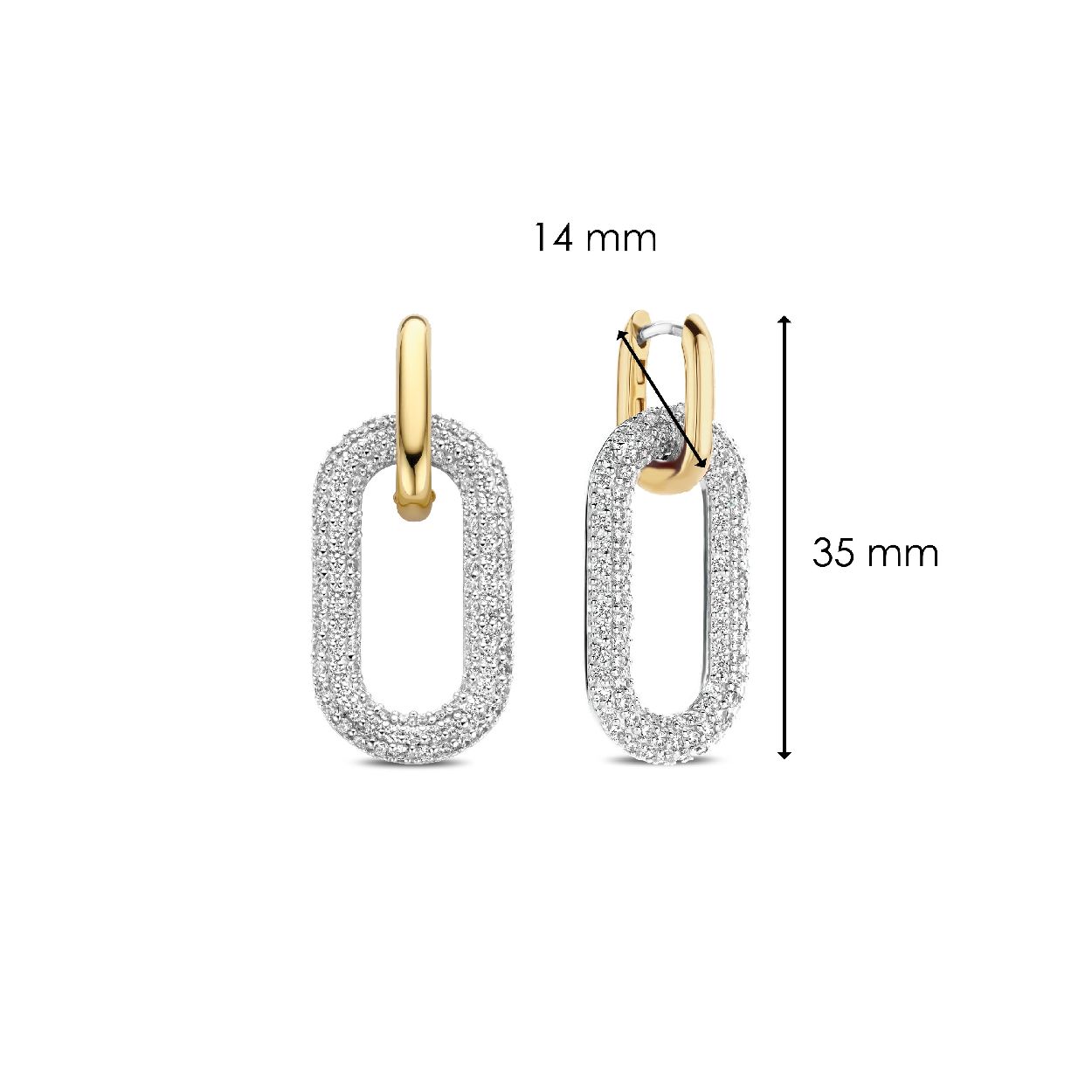 Deze vergulde TI SENTO zilveren oorbellen 7844ZY hebben twee verbonden schakels. Een van de schakels is bezet met een glinsterende cubic zirconia pavé dat wordt gedragen door een goud vergulde schakel. De oorbellen zijn gemaakt van 925 sterling zilver. Versier je oren met deze luxueuze statement pieces. Laat hun stralende licht de eyecatcher van je look zijn.