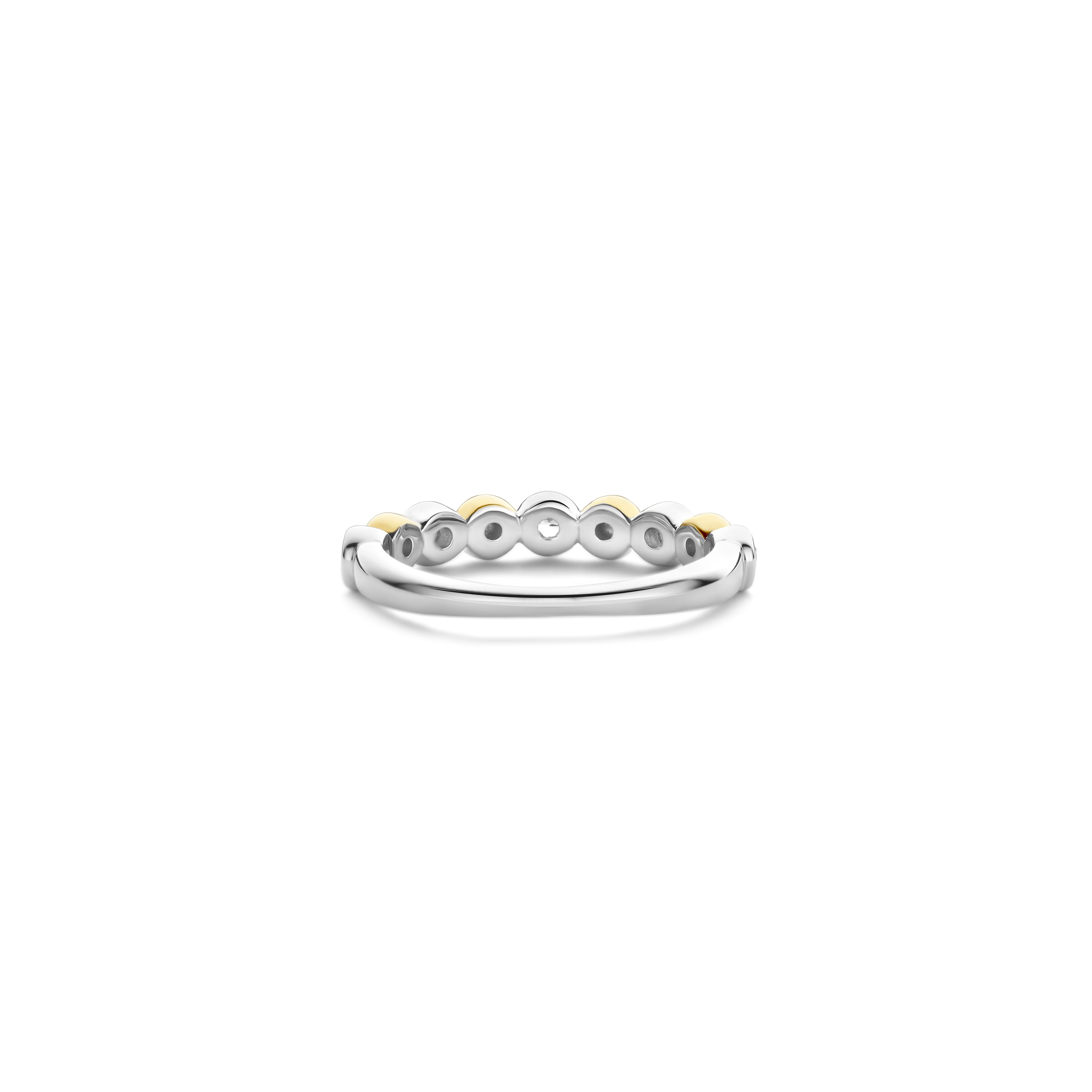 Met deze TI SENTO goudkleurige ring 12365ZY vier je de kunst van contrast. Een moderne klassieker met een stralende twist. Vervaardigd uit hoogwaardig 925 zilver heeft deze ring een opvallende rij bezelgezette zirkonia stenen die afwisselen met gepolijste vergulde bolletjes. Het samenspel van warme goudtinten en fonkelende stenen creëert een verfijnd maar eigentijds ontwerp, perfect om dagelijkse looks te verfraaien of een vleugje glamour toe te voegen aan speciale gelegenheden. De veelzijdige elegantie zorgt ervoor dat het elke outfit versterkt, of het nu casual wordt gecombineerd of met chique avondkleding. Draag de ring alleen voor een verfijnde statement of combineer het met andere TI SENTO sieraden voor een gelaagde, luxueuze stijl. Zorgvuldig vervaardigd voor de gevoelige huid, deze nikkelvrije en hypoallergene ring garandeert langdurig comfort en kwaliteit.