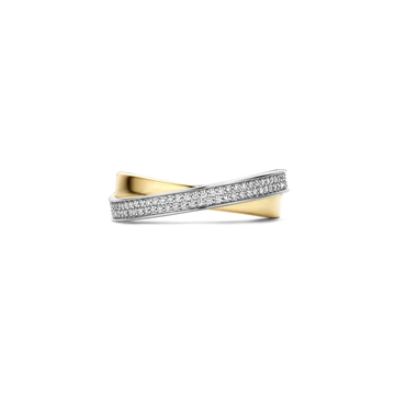 Omarm moeiteloze dualiteit met deze TI SENTO vergulde ring 12395ZY. Vervaardigd uit 925 sterling zilver verenigt dit crossover-ontwerp twee sculpturale banden: één goudkleurig verguld, de ander platinakleurig verguld en pavé gezet met briljant geslepen witte zirconia. De vloeiende lijnen draaien in elkaar en creëren een verfijnd contrast van schittering en glans, wat subtiele beweging en fonkeling toevoegt aan elk gebaar. Alleen gedragen maakt hij een elegant statement, gecombineerd in een stack voegt hij diepte en textuur toe aan je dagelijkse collectie. Nikkelvrij en hypoallergeen, deze ring biedt blijvend comfort met een gepolijste, moderne afwerking.