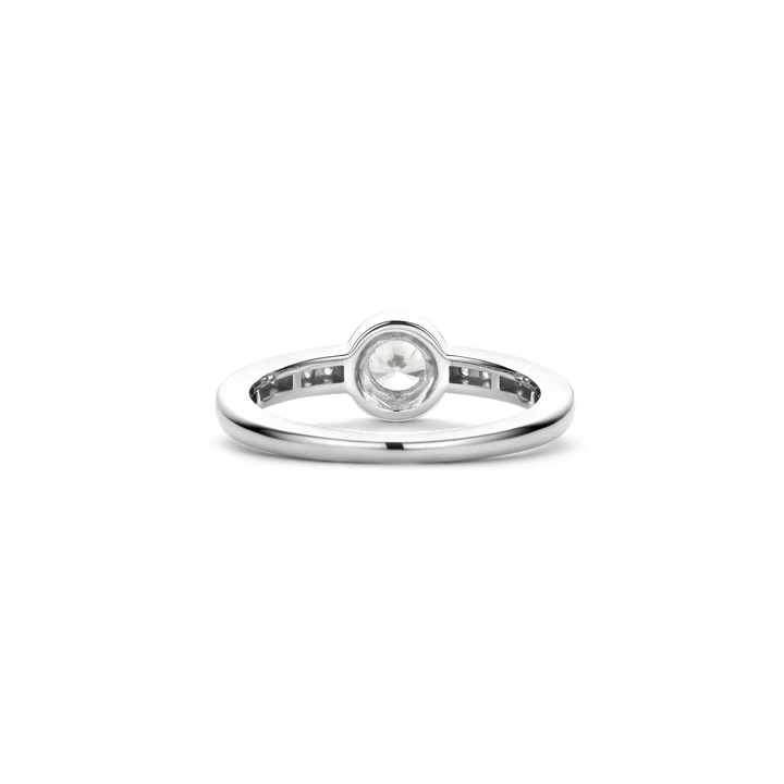 Omarm tijdloze schittering met deze TI SENTO platinakleurig vergulde ring 12390ZI. Vervaardigd uit 925 sterling zilver is de ring voorzien van een ronde witte zirconia in een randzetting als middelpunt, verhoogd en open geplaatst om het licht maximaal te vangen. De band is langs de schouders pavé gezet met briljant geslepen stenen, waardoor een verfijnde lijn van fonkeling ontstaat die de klassieke elegantie van de ring benadrukt. De uitgebalanceerde proporties en gladde zetting maken hem moeiteloos draagbaar, van dag tot nacht, seizoen na seizoen. Nikkelvrij en hypoallergeen, deze ring biedt een blijvende glans met comfortabel draaggemak de hele dag door.