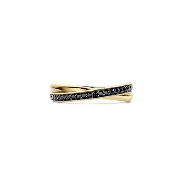 Verhoog het contrast van tinten met de TI SENTO driekleurige zilveren ring 1953BY. Twee zorgvuldig gevormde banden van gepolijst 925 sterling zilver zijn in elkaar gevlochten: één afgewerkt met stralend geelverguld, de ander bezet met zwarte zirkonia. Het crossover-ontwerp geeft diepte en beweging zonder zwaar te ogen, waardoor de ring moeiteloos van dag- naar avondlook gaat. Draag hem solo voor een zelfverzekerde uitstraling of stapel hem met slanke ringen om het spel van kleur en textuur te versterken. Nikkelvrij en hypoallergeen, voor blijvend comfort bij elk draagmoment.