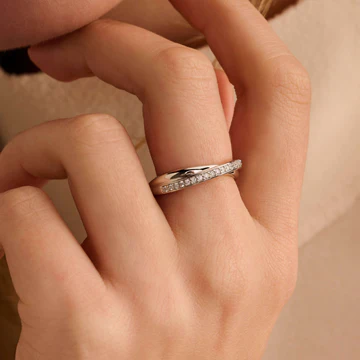 Deze designvolle TI SENTO - Milano ring is gemaakt van gerhodineerd sterling zilver. De kruisende band is voorzien van een rijzetting waar handmatig briljant geslepen zirkonia's in zijn verwerkt. Dit tijdloze ontwerp past helemaal binnen het Mix & Match concept van TI SENTO.