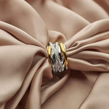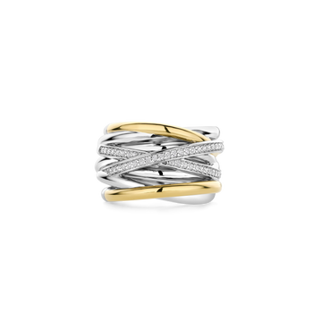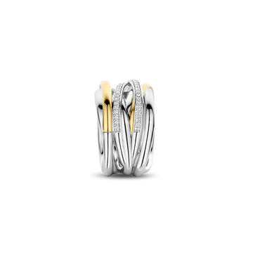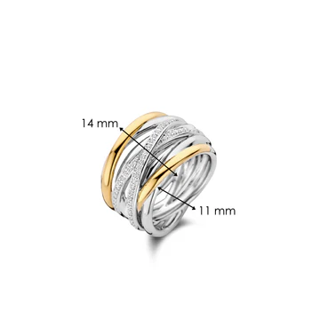 De TI SENTO vergulde zilveren ring 12067ZY is een stijlvol statement piece dat direct de aandacht trekt. Deze ring is gemaakt van hoogwaardig 925 sterling zilver en afgewerkt met een laag platina voor een langdurige, sprankelende glans. Het ontwerp combineert elegante gedraaide banden, waarvan sommige verguld zijn met geelgoud en andere met de hand bezet met schitterende witte cubic zirconia-stenen. Dit zorgt voor een luxe uitstraling die een vleugje glamour aan je handen geeft. Het unieke ontwerp van de ring onthult subtiele glimpsen van de huid, wat een verleidelijke en moderne look creëert. Deze ring is meer dan alleen een sieraad – het is een eigentijds kunstwerk dat je draagt. Perfect om je outfit een extra boost te geven. Met zorg vervaardigd voor gevoelige huidtypes, is deze ring nikkelvrij en hypoallergeen, waardoor je geniet van ultiem comfort zonder irritaties. Maak een statement met deze opvallende TI SENTO ring en voeg een vleugje verfijning toe aan je sieradencollectie. Koop nu de TI SENTO ring 12067ZY en til je look naar een hoger niveau met dit schitterende sieraad.