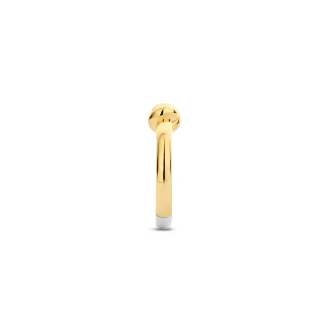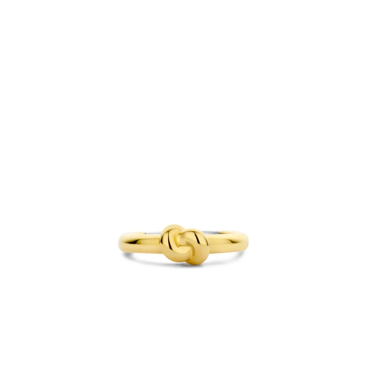 Deze TI SENTO vergulde zilveren ring 12278SY heeft in het midden een sierlijke knoop. De ring is gemaakt van 925 sterling zilver en plated met geelgoud. Het perfecte statement piece die je helemaal draagt zoals jij het wilt; mix en match het met andere designs of als stapelring tussen andere ringen.