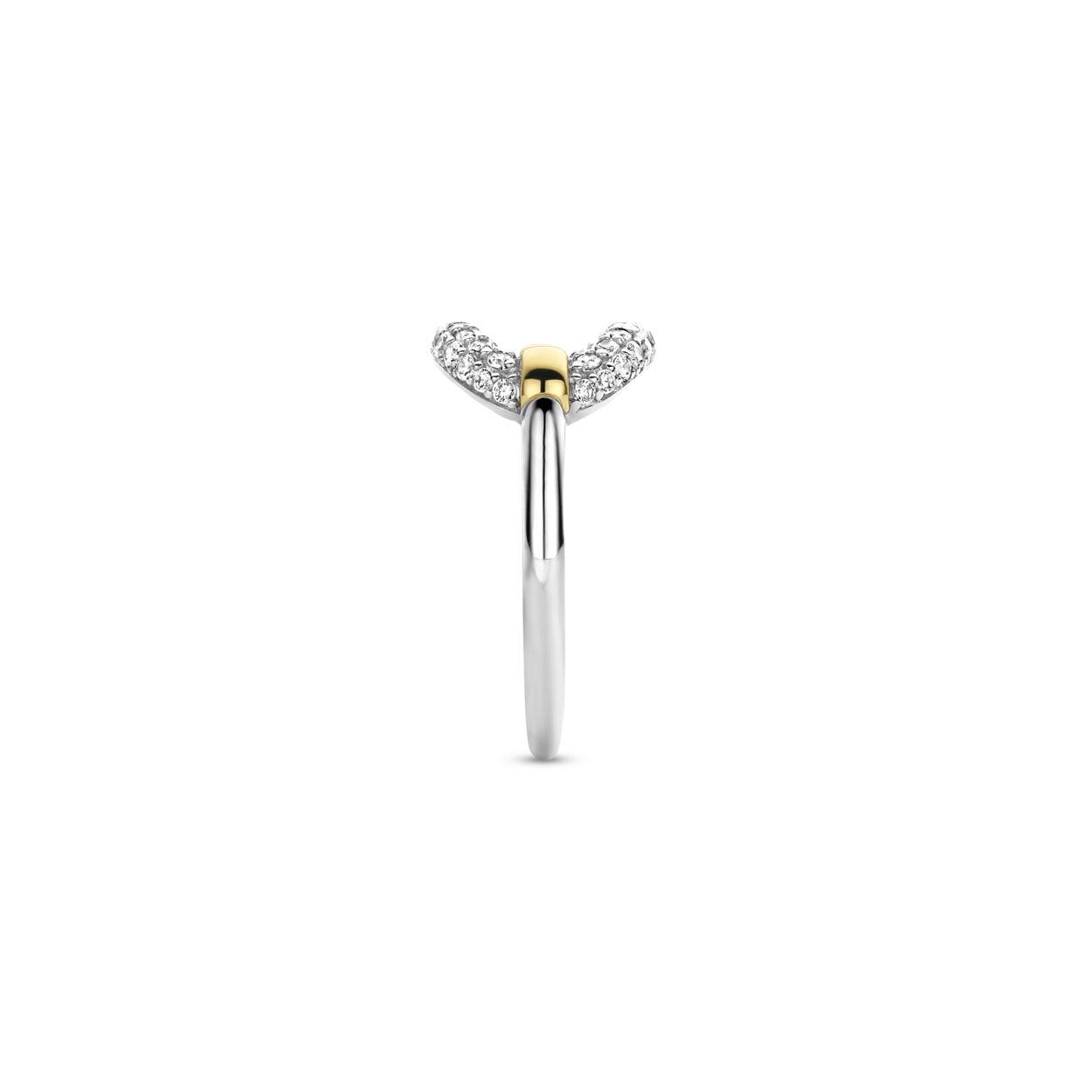 Deze TI SENTO vergulde pavé ring 12293ZY is verrijkt met onze signature brede glinsterende pavé schakel. De ring is vervaardigd uit de hoogste kwaliteit 925 sterling zilver en verguld met geelgoud. Het schitterende pavé bestaat uit met de hand gezette witte cubic zirconia (CZ) stenen. Deze luxueuze classic met een twist is ontworpen om in de spotlight te staan! Het stralende middelpunt van je look. Welke kant je de ring ook draait, het glinstert altijd. Al onze ringen zijn nikkelvrij en hypoallergeen.