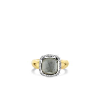 Deze TI SENTO vergulde ring 12330MW heeft een grote grijze parelmoeren kussenvormige steen in een schitterende pavé zetting. Een harmonieuze mix van strakke vormen en levendige kleuren. De funky kussenvorm, die symbool staat voor stabiliteit en richting, laat de iconische ontwerpelementen van TI SENTO zien. De ring is geplateerd met geelgoud, wat levendigheid en glans toevoegt aan het ontwerp. De ring is gemaakt van eersteklas 925 sterling zilver en combineert moderne verfijning met tijdloze elegantie. Voeg een vleugje luxe toe aan je handen en combineer met het onverwachte. Net als al onze sieraden is deze ring nikkelvrij en hypoallergeen, wat niet alleen stijl belooft, maar ook comfort en kwaliteit die de tand des tijds doorstaat.