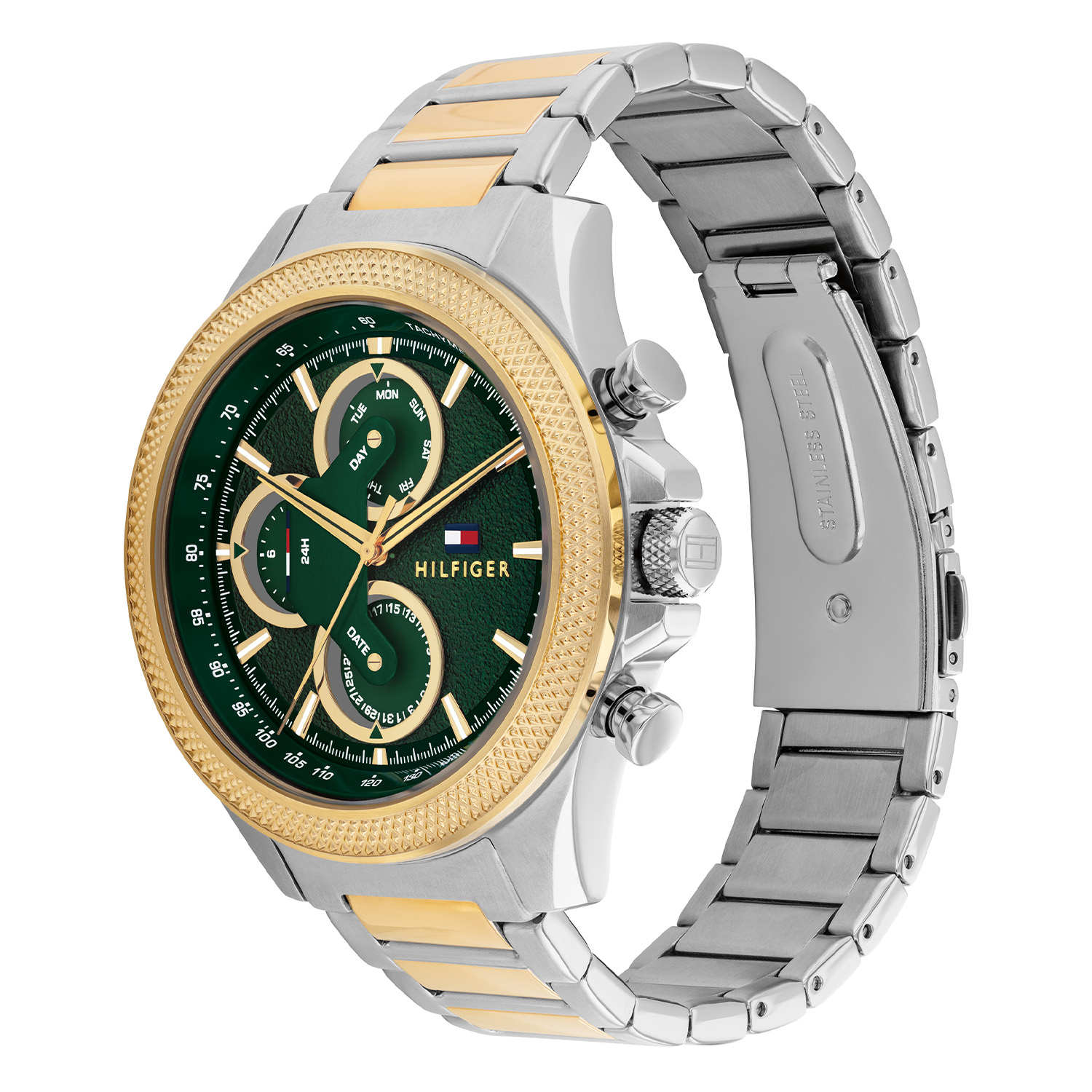 Tommy Hilfiger Quarts heren pols horloge staal met stalen band Bicolor uit de Clark collectie. 5 ATM waterdicht.