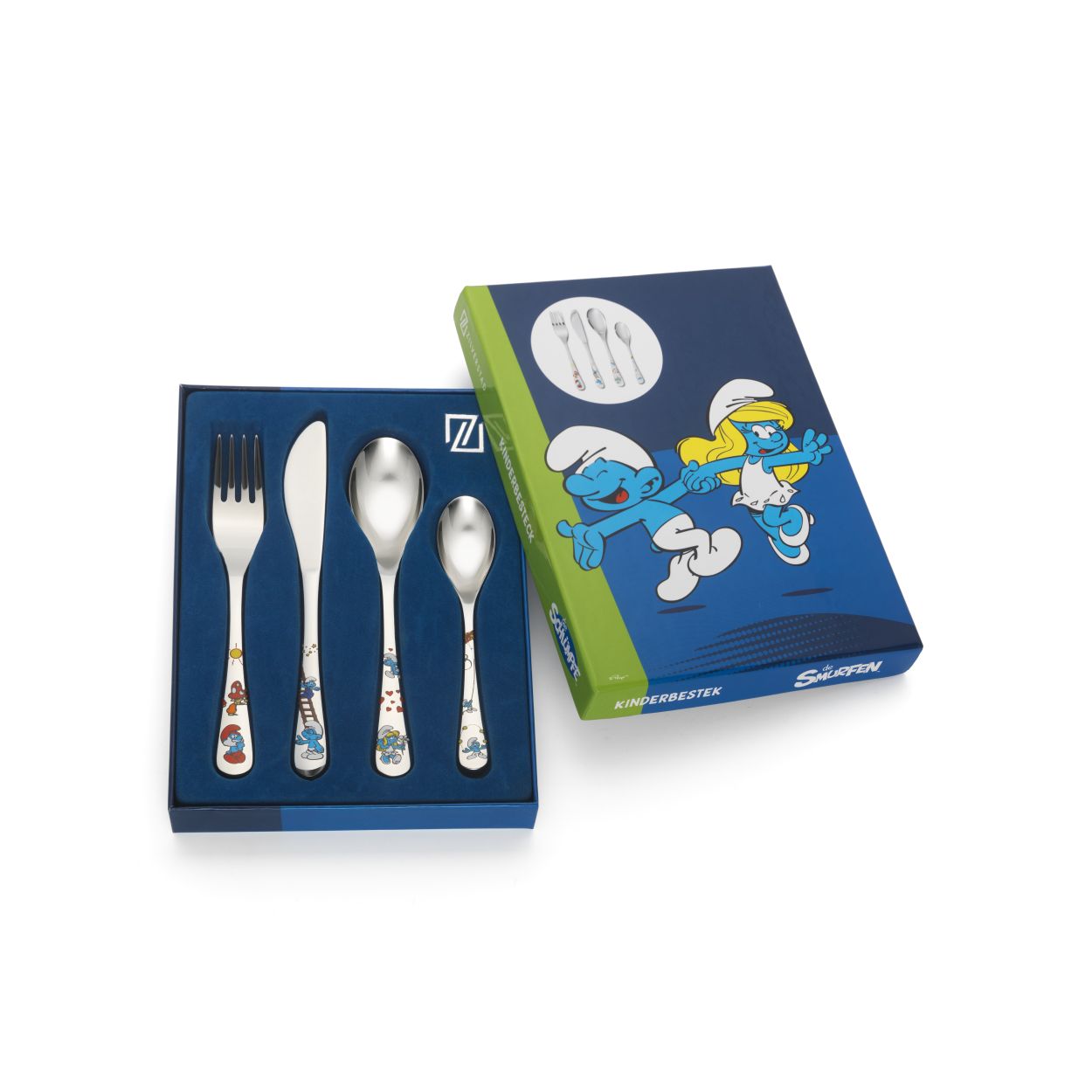 Kindercouvert De Smurfen, 4-delig, kleur. Kan in de vaatwasser!