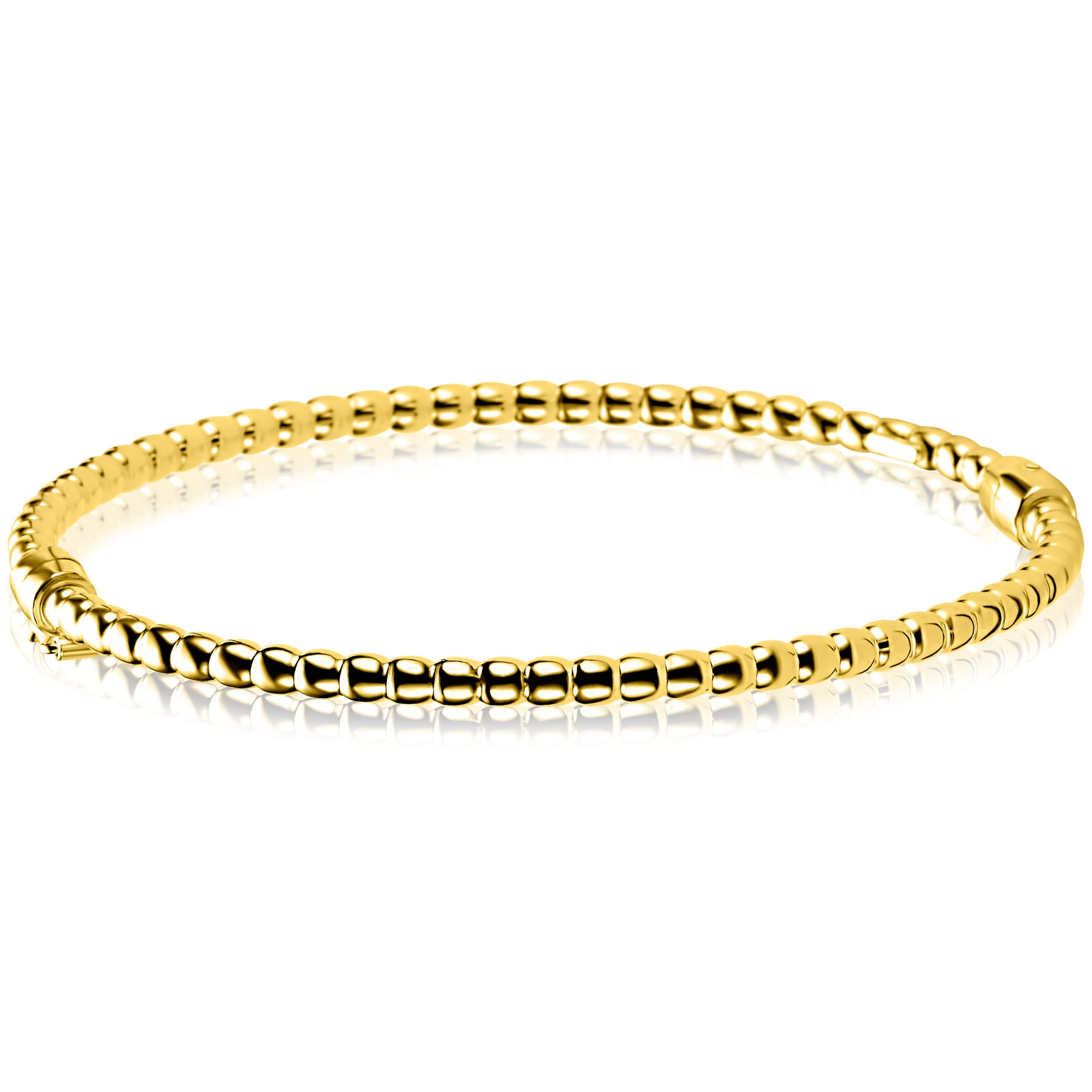 ZINZI gold plated zilveren bangle armband met bolletjes-motief (3mm breed) en een exclusieve scharniersluiting voor eenvoudig om- en afdoen. Vervaardigd van eerste gehalte zilver (925) en extra geel verguld.