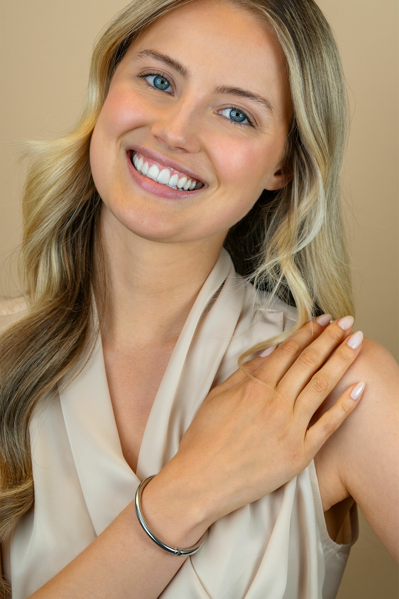 ZINZI zilveren bangle armband met een solide, ronde buis (5mm breed) en een exclusieve scharniersluiting voor eenvoudig om- en afdoen. Vervaardigd van eerste gehalte zilver (925) en voorzien van een extra rodiumlaag voor een langdurige glans.