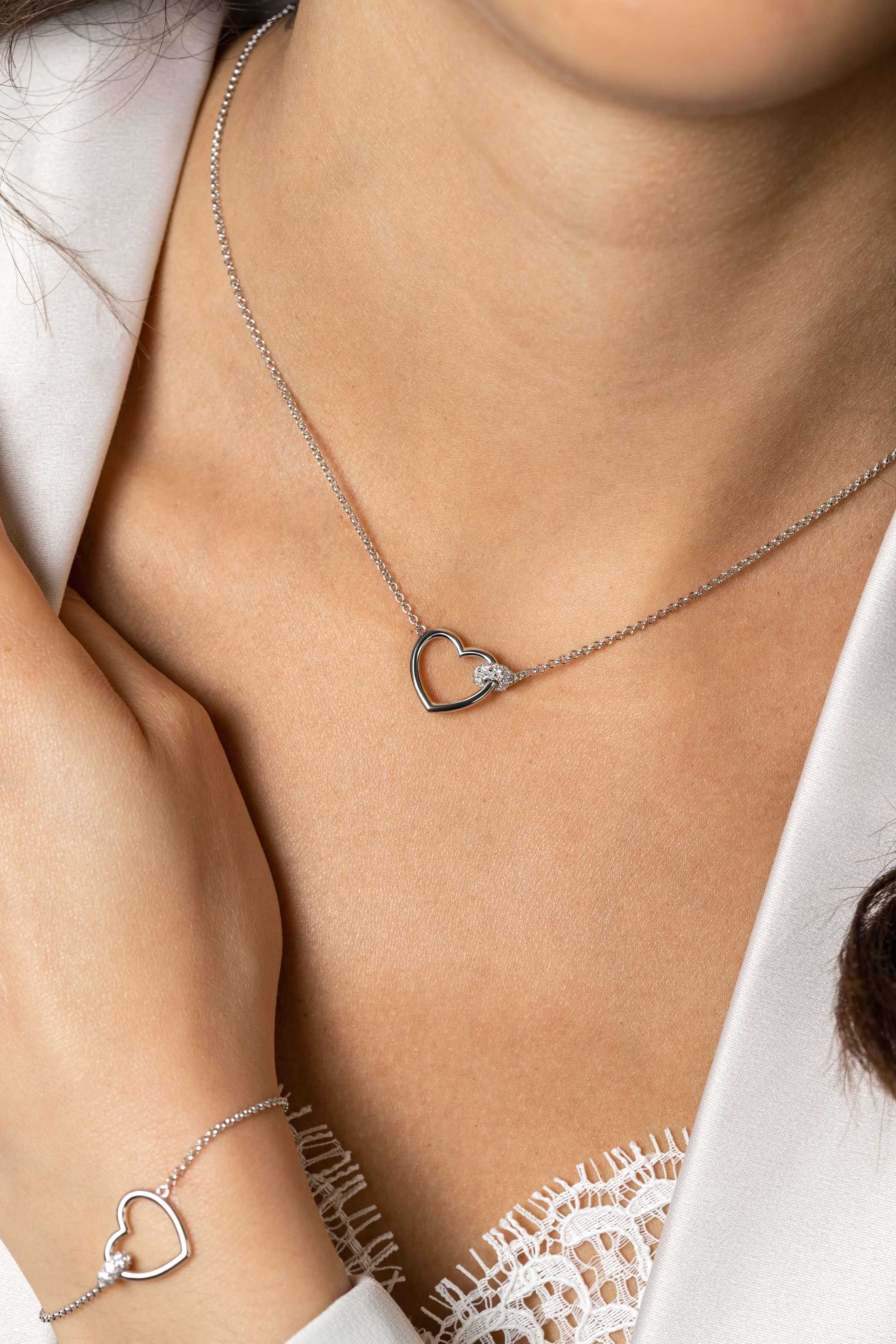 ZINZI zilveren trendy ketting, waarbij in het midden twee vormen mooi met elkaar verbonden zijn: een glad open hartje en een kleinere bol vol bezet met witte zirconia's. De lengte is te variëren tussen 40 en 45cm. Deze ketting kan ook kort op de hals worden gedragen. Met herkenbaar Zinzi hartje bij de sluiting. Vervaardigd van eerste gehalte zilver (925) en met extra rodiumlaag voor een langdurige glans.
