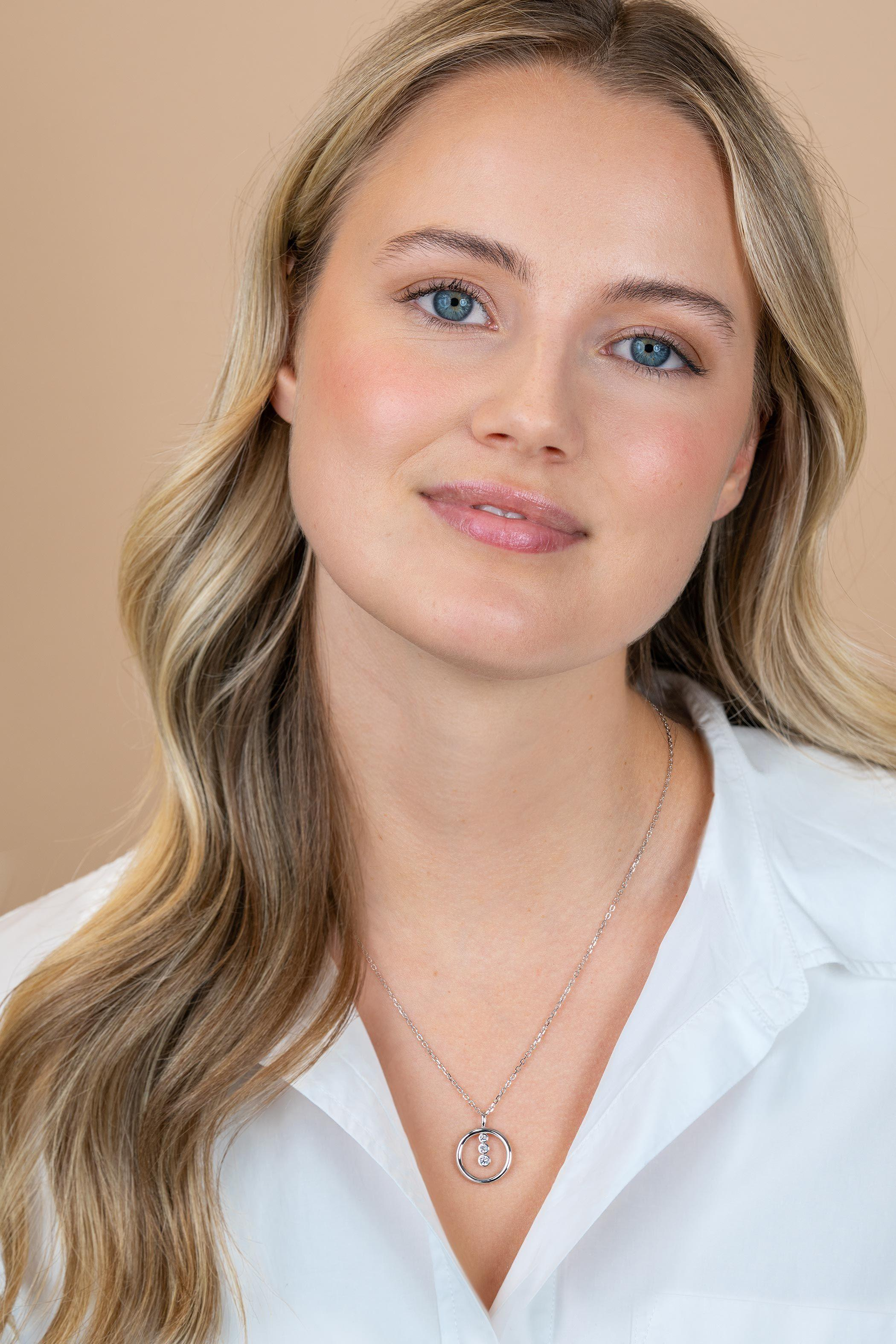 ZINZI zilveren ketting 45cm met ronde hanger (18mm) en drie ronde zettingen met fonkelende witte zirkonia's. De lengte van de ketting is verstelbaar van 42cm tot 45cm. Vervaardigd van eerste gehalte zilver (925) en voorzien van een extra rodiumlaag voor langdurige glans.