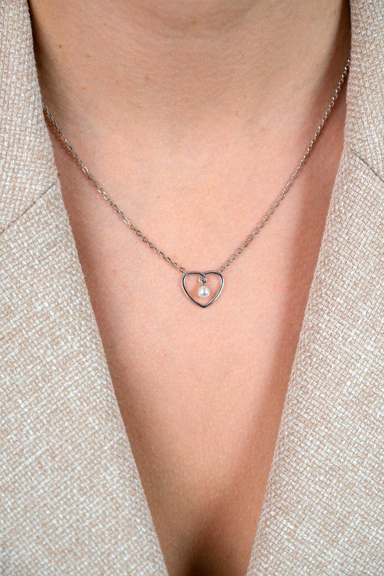 ZINZI zilveren ketting met opengewerkt hart van 12mm en bungelend witte parelhanger in het midden. De lengte van de ketting is te variëren tussen 42 en 45cm. De ketting is vervaardigd van eerste gehalte zilver (925) en voorzien van een extra rodiumlaag voor een langdurige glans.