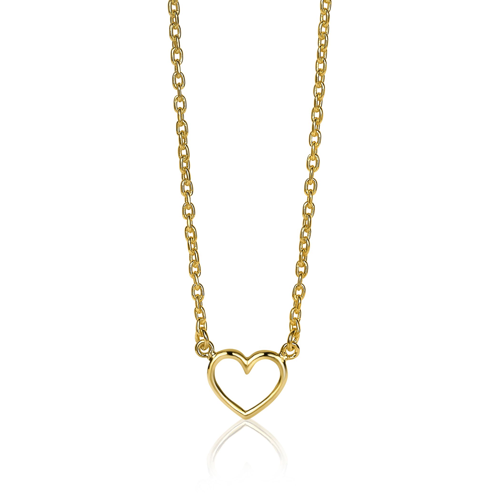 ZINZI zilveren jasseron ketting geel verguld met open hartje in het midden. Met herkenbaar ZINZI hartje bij de sluiting. De lengte is te variëren tussen 40 en 43cm. Vervaardigd van eerste gehalte zilver (925) en met extra geelgoudkleurige laag.