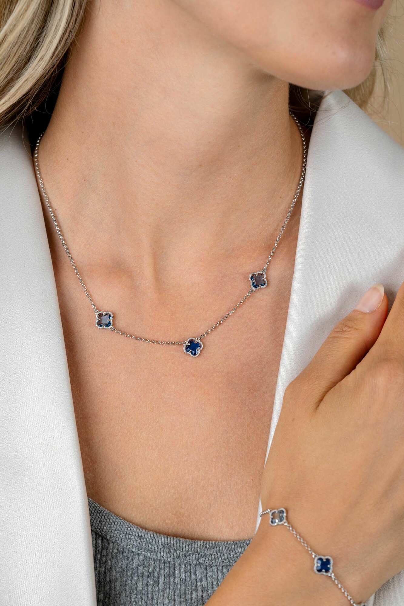 ZINZI zilveren schakelketting met twee lichtblauwe klavers en een donkerblauwe klaver 42-45cm ZIC2663B