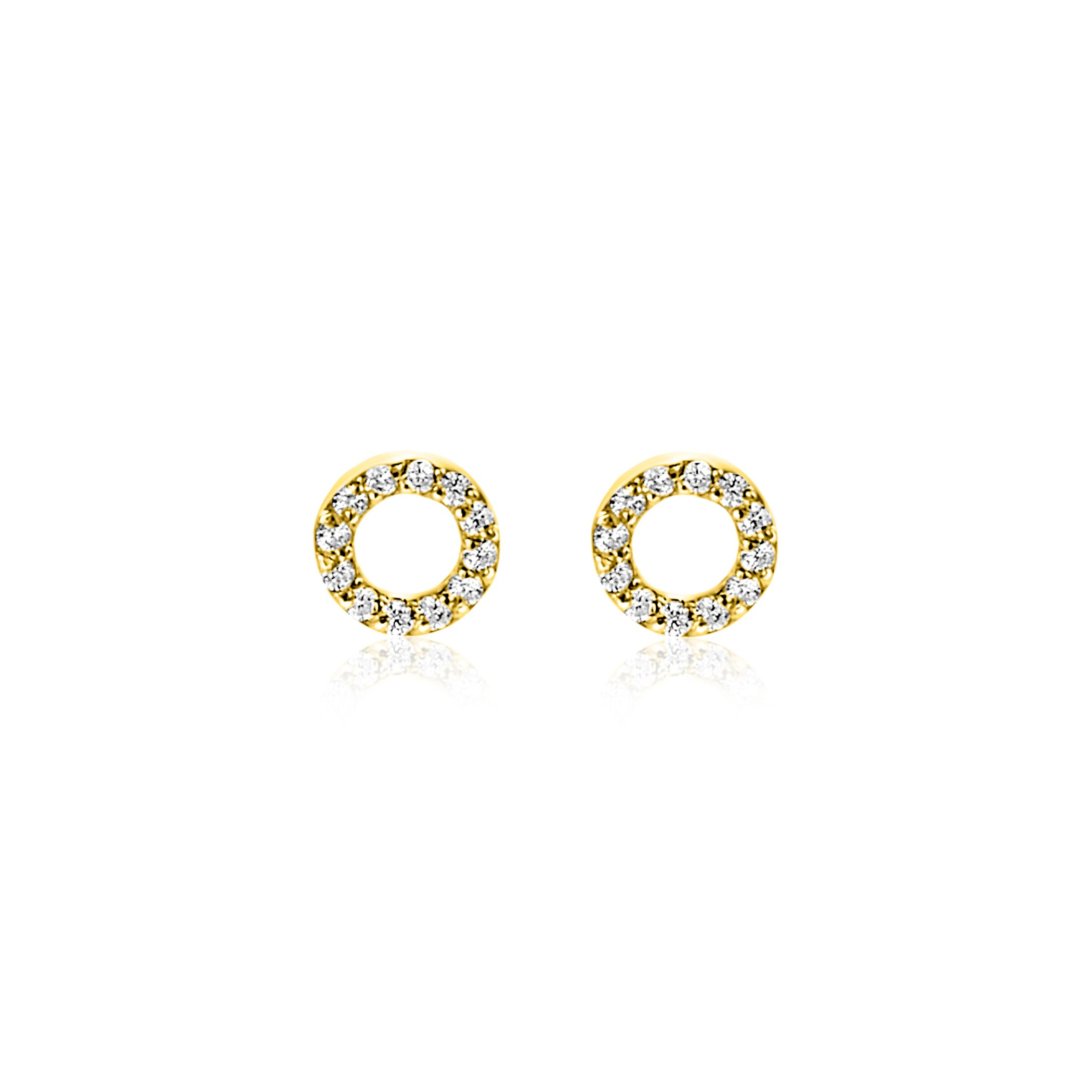 5,5mm ZINZI Gold 14 krt gouden oorknoppen open rondje bezet met witte zirkonia's ZGO550