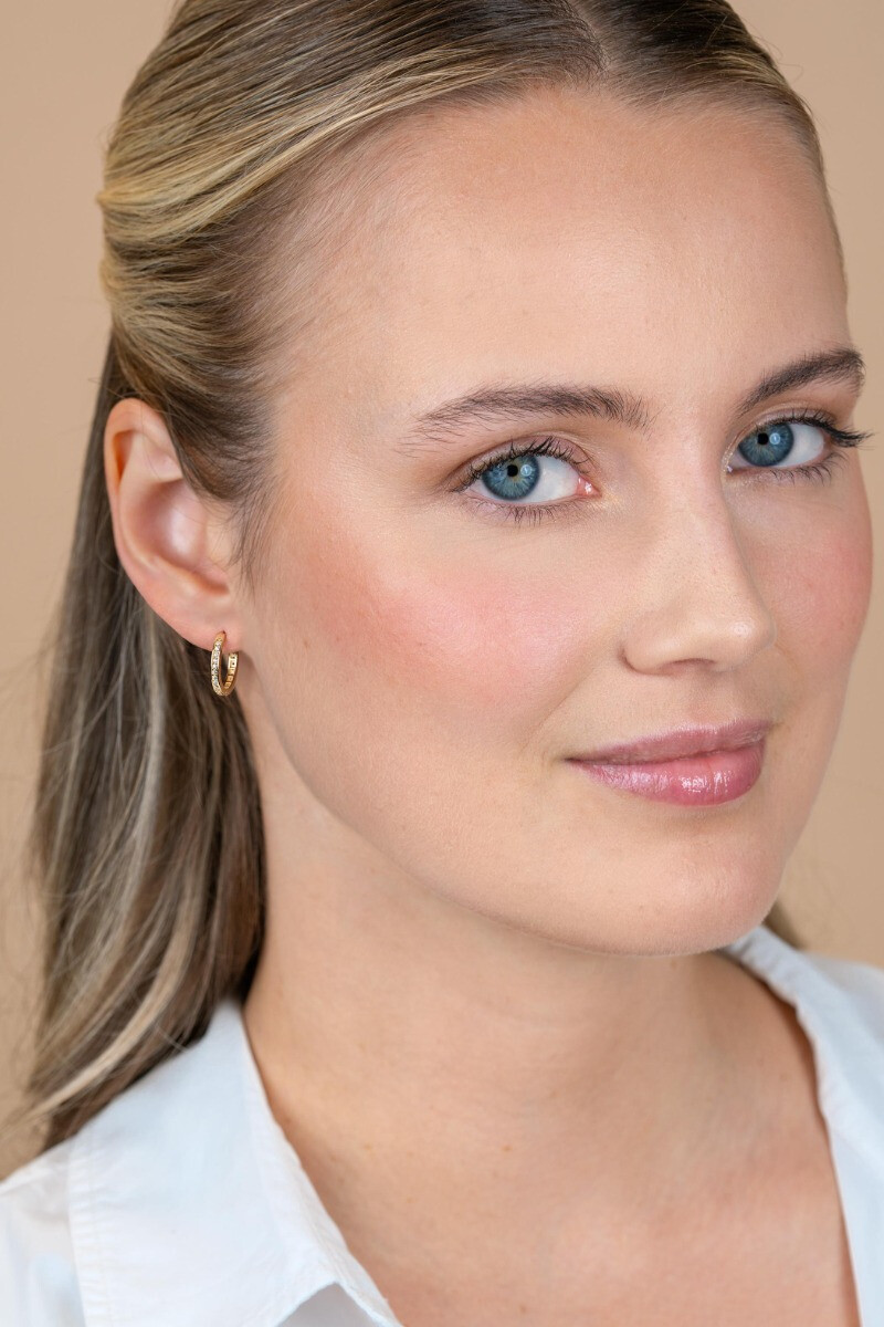 15mm ZINZI Gold 14 krt gouden oorringen, bezet met witte zirconia's met luxe klapsluiting 15mm x 2mm vierkante buis ZGO571Z