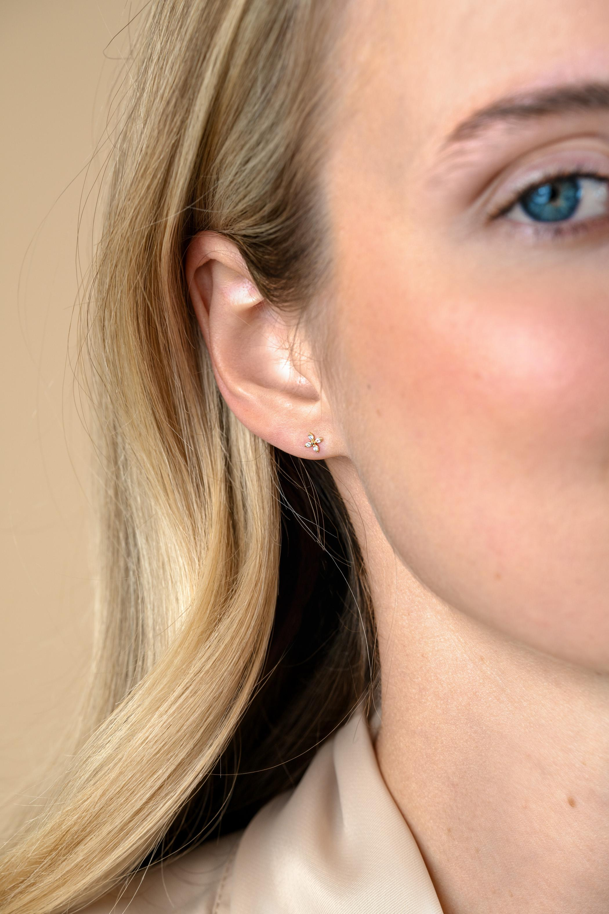 ZINZI Gold 14 karaat gouden fantasie oorknoppen in bloemvorm. De vier bladeren van de bloem zijn bezet met een ronde witte zirkonia. De oorknoppen zijn 5mm lang. Vervaardig van geheel 14 karaat goud (585).