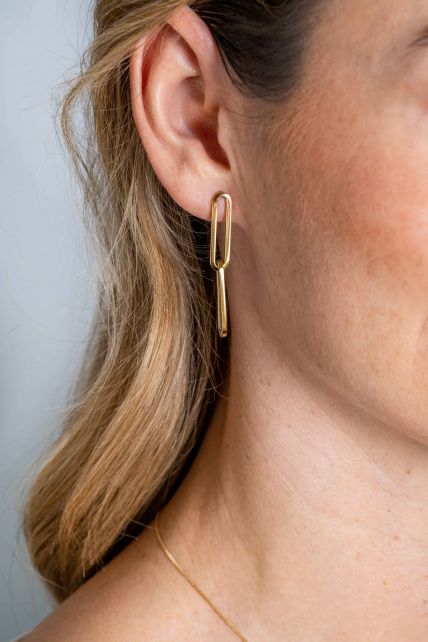 ZINZI Gold 14 karaat gouden oorstekers 42mm met twee trendy paperclip-schakels. Vervaardigd van geheel 14 karaat goud (585).
