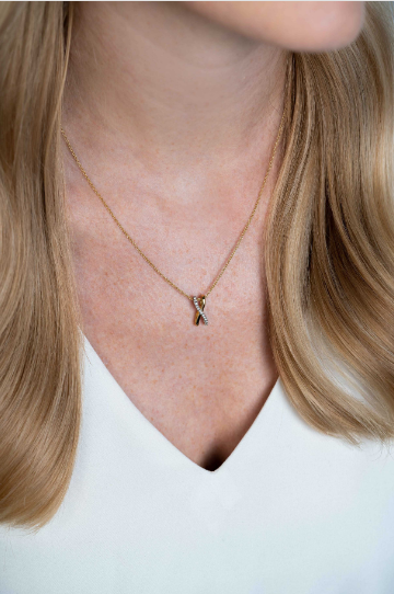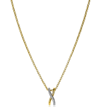 ZINZI zilveren bicolor hanger (15x6mm) met golvend cross-over design, bezet met witte zirconia's. De hanger is exclusief collier geprijsd. Maak je look compleet met de bijpassende oorsieraden en ring! Vervaardigd van eerste gehalte zilver (925) en extra 14K geel verguld.