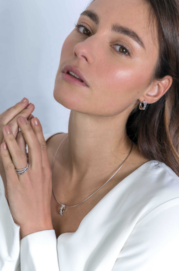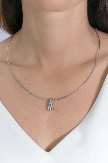 ZINZI zilveren luxe cross-over hanger van 18mm. Een mooie combinatie van drie schakels, waarbij de gladde schakel én de vol bezette schakel over de bolletjes schakel heen gaan. De hanger is exclusief ketting geprijsd. Vervaardigd van eerste gehalte zilver (925) en met extra rodiumlaag voor een langdurige glans.