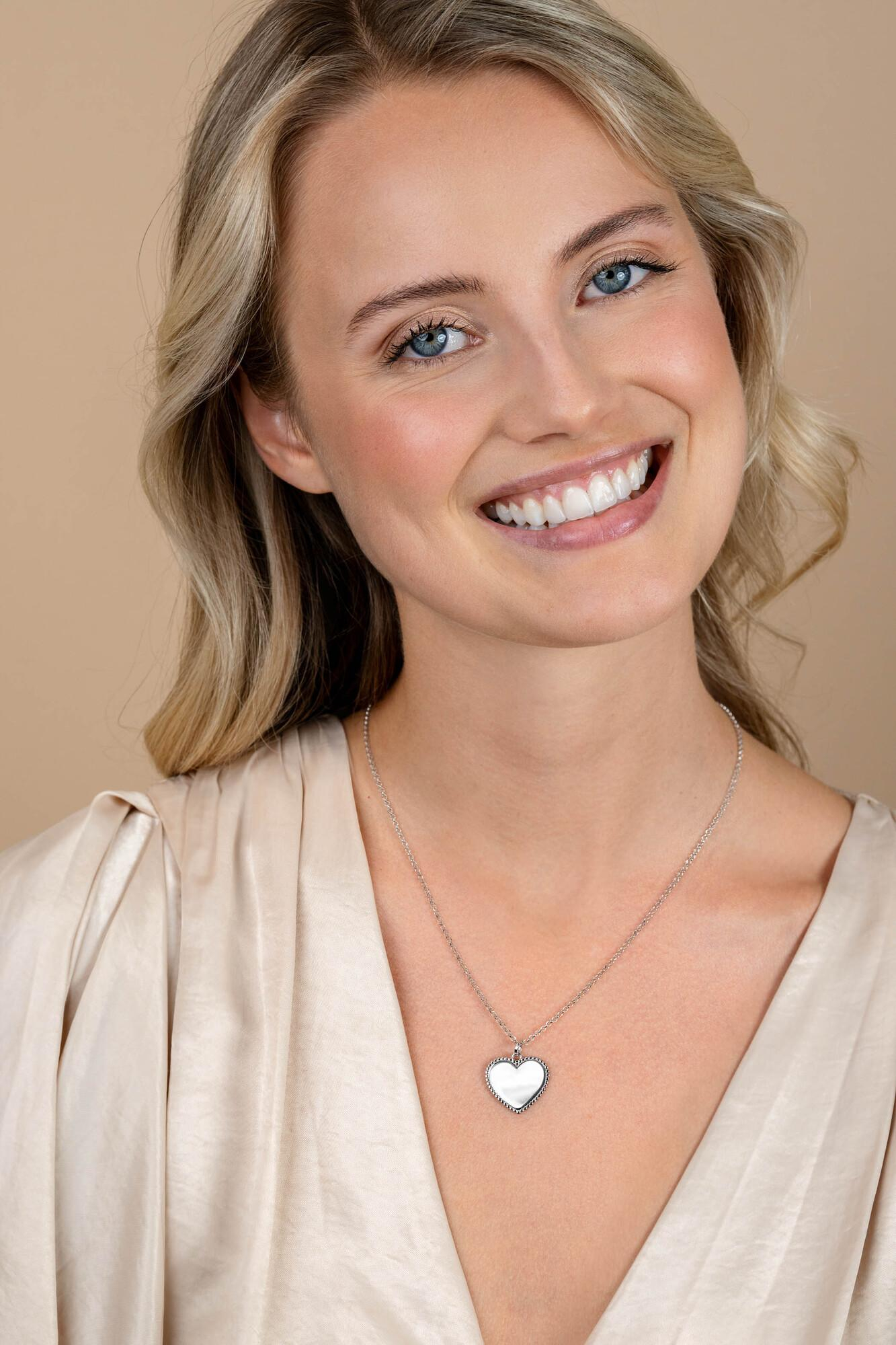 ZINZI zilveren coin hanger hart met parelrand in 23mm grootte. Ideaal om een gravure in te zetten! Vervaardigd van eerste gehalte zilver (925) en voorzien van een extra rodiumlaag voor een langdurige glans. Exclusief ketting geprijsd. Let op: De gravure kan afwijken van de getoonde afbeelding door handmatige productieprocessen.