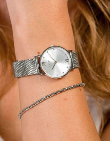 Het ZINZI Lady Crystal horloge is het kleinste model van de Zinzi horloges. Met zijn geheel stalen kast van 28mm oogt dit horloge elegant op iedere pols. De zilvergekleurde wijzerplaat is bezet met schitterende witte crystals bij de uuraanduiding. De platte ronde stalen zilvergekleurde kast (28mm) en de romeinse cijfers zorgen voor een classic en elegante look. Voorzien van een stalen mesh band (14mm) in de kleur zilver. Extra kwaliteit: Voorzien van een extra dun Japans kwaliteitsuurwerk, sterk mineraal glas en het horloge is 5atm waterbestendig (tegen regen en spatwater).