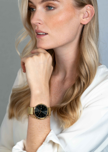 Het nieuwe ZINZI Retro horloge is klassiek en trendy tegelijk. Het extra dunne Japanse uurwerk met datum en de platte ronde stalen goudkleurige kast (38mm) zorgen voor een elegante look. Voorzien van een zwarte wijzerplaat, goudkleurige wijzers en stalen mesh band in de kleur goud. De band is eenvoudig te verwisselen door het handige schuifsysteem aan de achterkant. Leuk detail: de geelvergulde hartjes seconde wijzer en de speelse ronde dag-aanduiding.