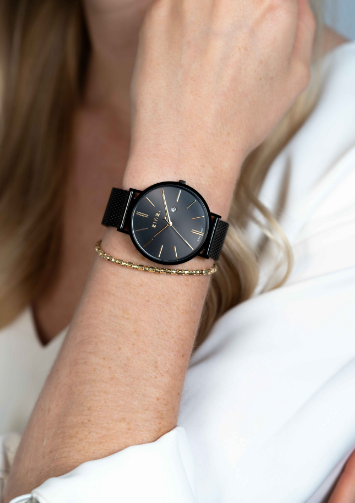 Het nieuwe ZINZI Retro horloge is klassiek en trendy tegelijk. Het extra dunne Japanse uurwerk met datum en de platte ronde stalen zwarte kast (38mm) zorgen voor een elegante look. Voorzien van een zwarte wijzerplaat, goudkleurige wijzers en stalen mesh band in zwart. De band is eenvoudig te verwisselen door het handige schuifsysteem aan de achterkant. Leuk detail: de geelvergulde hartjes seconde wijzer en de speelse ronde dag-aanduiding.