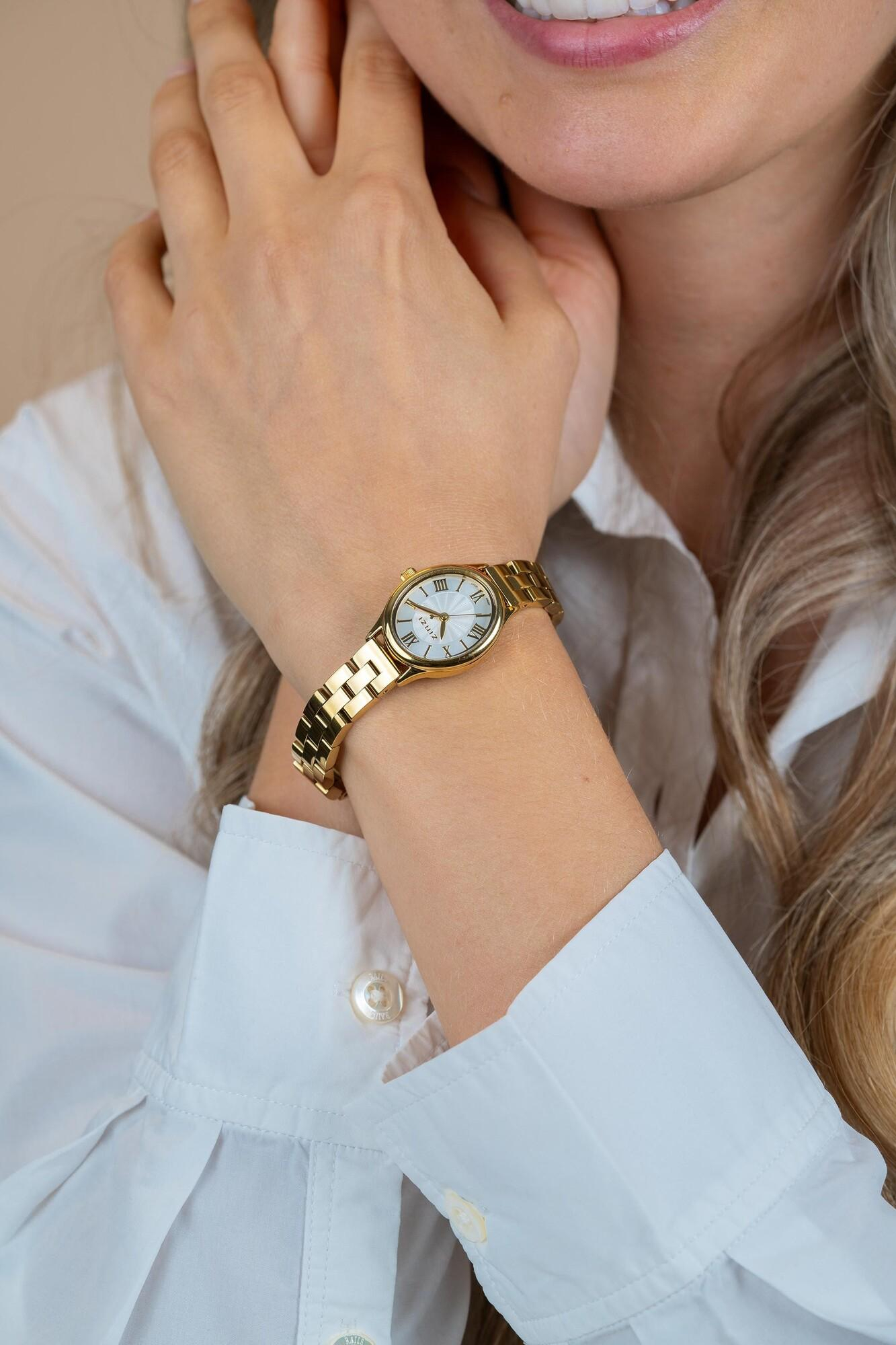 Het ZINZI 'Belle Ovale' horloge is een verfijnd ontwerp met een 26mm ovale kast. De klassieke romeinse cijfers en sierlijke wijzers geven het horloge een mooie uitstraling. Voorzien van een zilverkleurige wijzerplaat met geelgoudkleurige indexen en een goudkleurige stalen schakel band. Extra kwaliteit: Voorzien van een extra dun Japans kwaliteitsuurwerk, sterk mineraal glas en het horloge is 3atm waterbestendig (tegen regen en spatwater).