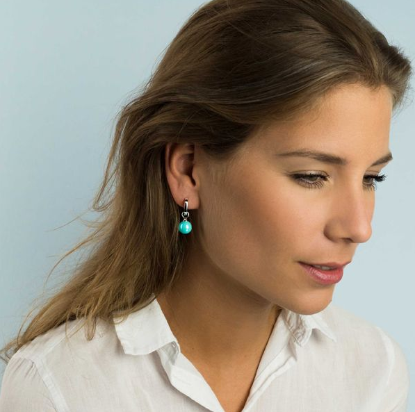ZINZI zilveren oorbedels met turquoise glasparel. De parel is 10mm groot. Hang ze sierlijk aan je zilveren Zinzi oorringen . De oorringen zijn niet bij de prijs inbegrepen. Vervaardigd van eerste gehalte zilver (925) en met extra rodiumlaag voor een langdurige glans.