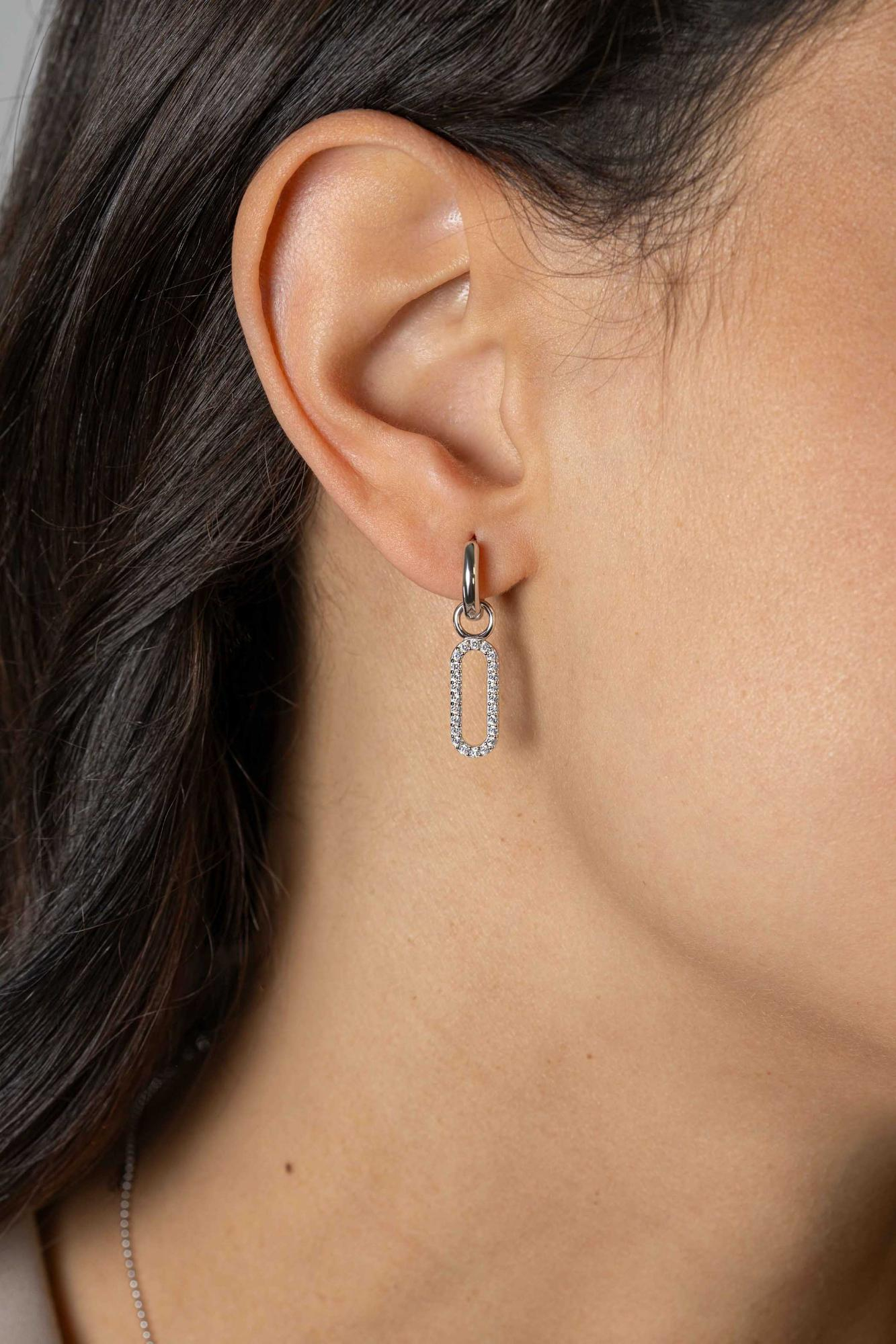 ZINZI zilveren oorbedels in ovale vorm (15mm), bezet met witte zirconia's. Hang deze oorbedels sierlijk aan je zilveren ZINZI oorringen. De oorringen zijn niet bij de prijs inbegrepen. Vervaardigd van eerste gehalte zilver (925) en extra gerodineerd.