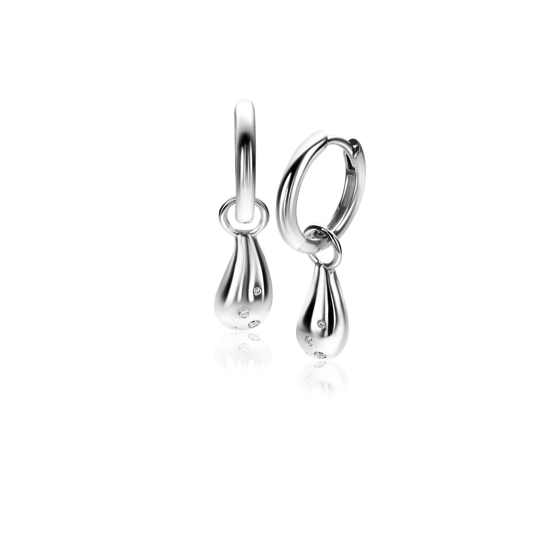 ZINZI zilveren oorbedels (17mm) in druppelvorm, bezet met vier witte zirconia's. Hang deze oorbedels sierlijk aan je zilveren ZINZI oorringen voor een speels effect. De oorringen zijn niet bij de prijs inbegrepen. Vervaardigd van eerste gehalte zilver (925) en voorzien van een extra rodiumlaag voor een langdurige glans.