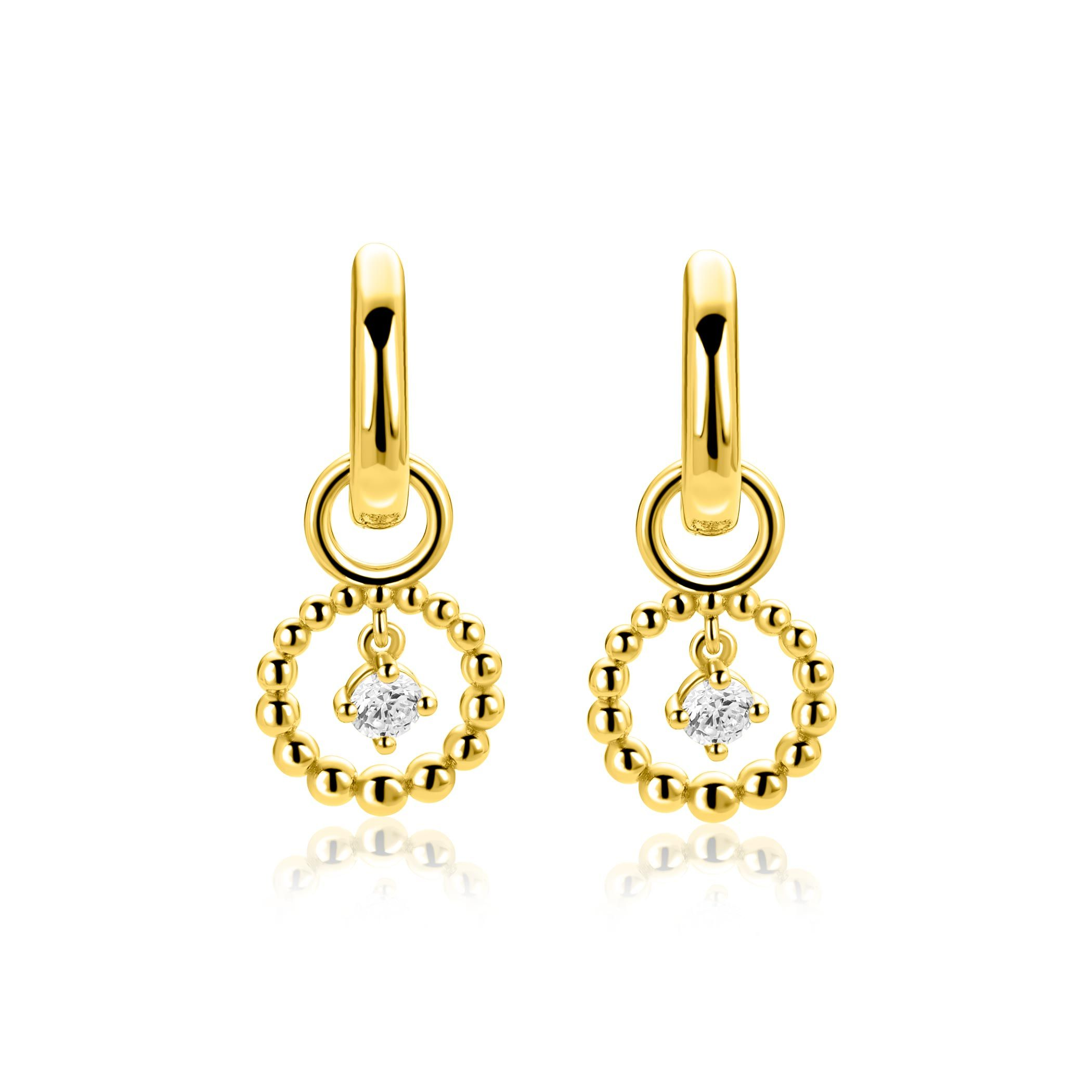 ZINZI goldplated zilveren oorbedels 10mm met bolletjes en bungelende witte zirkonia. De oorbedels zijn vervaardigd van eerste gehalte zilver (925) en extra geel verguld.