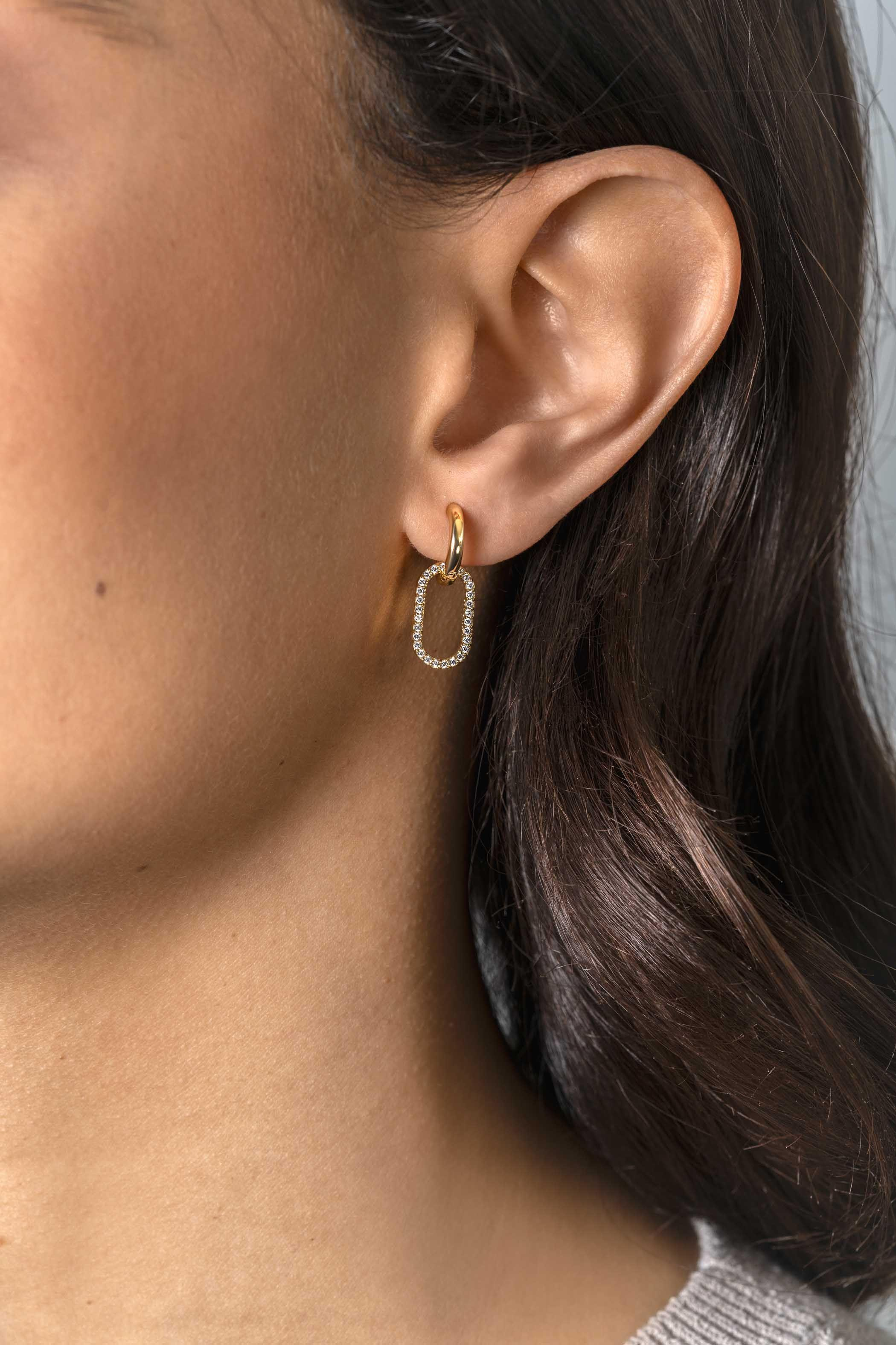 ZINZI gold plated zilveren oorbedels in ovale vorm (15mm), bezet met witte zirconia's. Hang deze oorbedels sierlijk aan je zilveren ZINZI oorringen. De oorringen zijn niet bij de prijs inbegrepen. Vervaardigd van eerste gehalte zilver (925) en extra geelverguld.