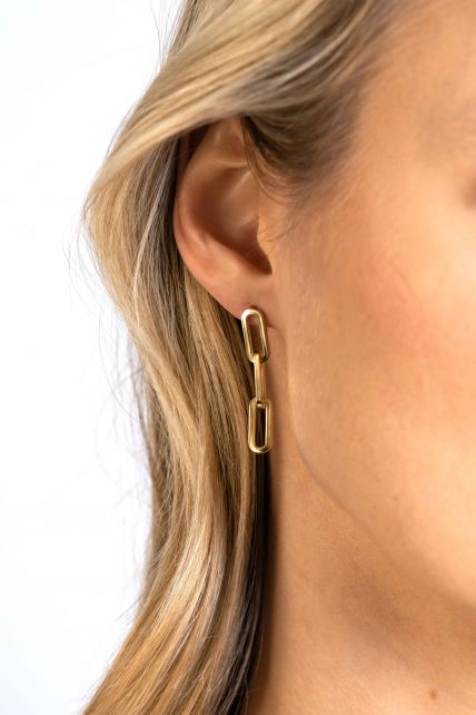 ZINZI Gold 14 karaat gouden oorstekers 34mm met drie trendy paperclip-schakels. Vervaardigd van geheel 14 karaat goud (585).