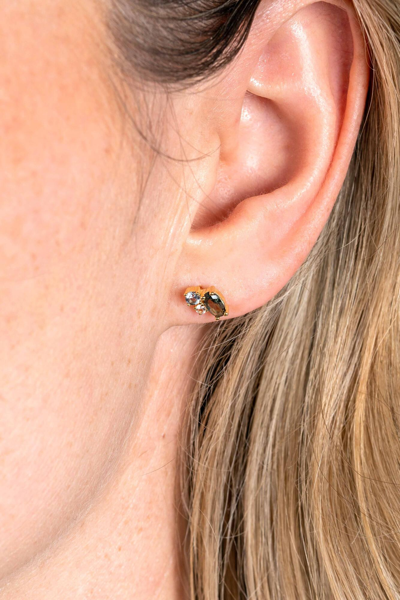ZINZI Gold 14 karaat gouden fantasie oorstekers 8mm bezet met champagne, lichtblauwe en groene zirconia's. Vervaardigd van geheel 14 karaat goud (585).