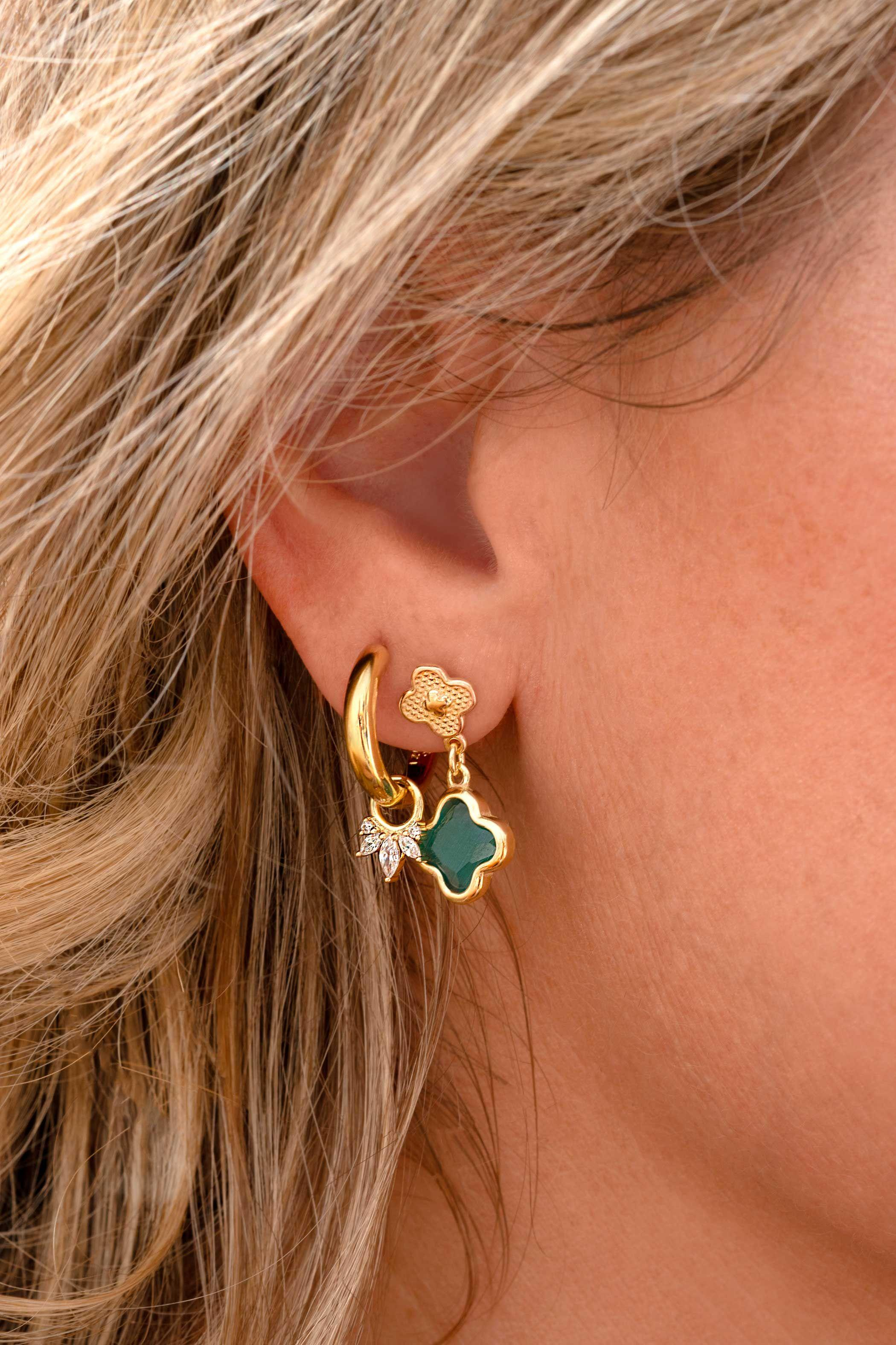 10mm ZINZI gold plated zilveren oorbedels met vijf speelse zettingen in aflopende grootte, bezet met witte zirconia's ZICH2633 (zonder oorringen)